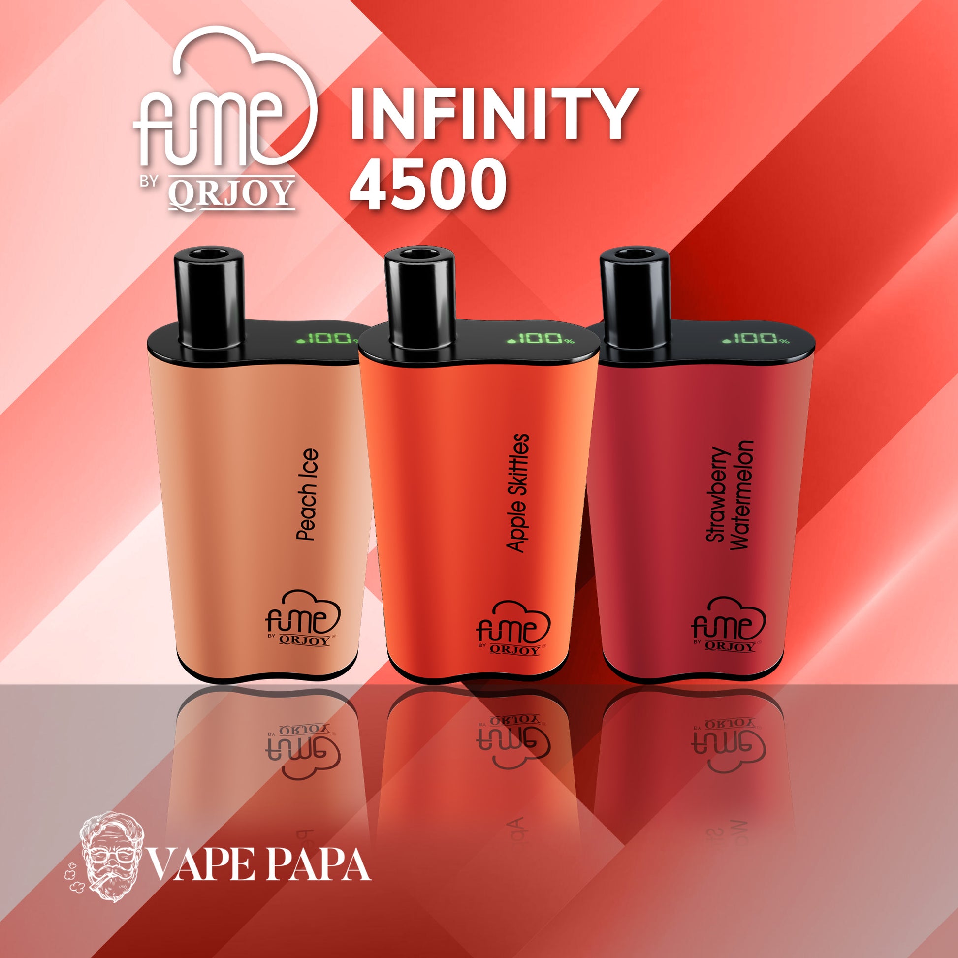 Shop the Fume Infinity 4500 Disposable Vape, featuring a powerful 5% nicotine strength, a 1500mAh battery, and an LED screen for real-time status updates.